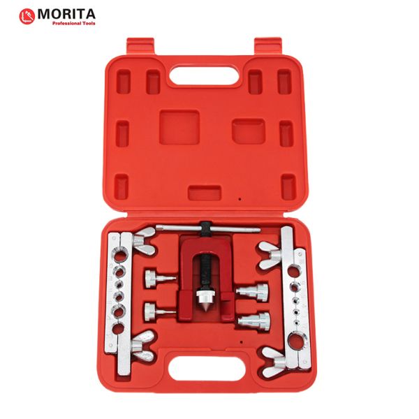 | Features | This pipe flaring tool kit is specially designed for single and double flaring and pipe expansion on copper and aluminum pipes. It can be used to make single or double flares; The deformation of the pipe is small during the mouthing process; in addition, the edge of the pipe end flared with this tool is smooth, and it is not easy to break after long-term use. |